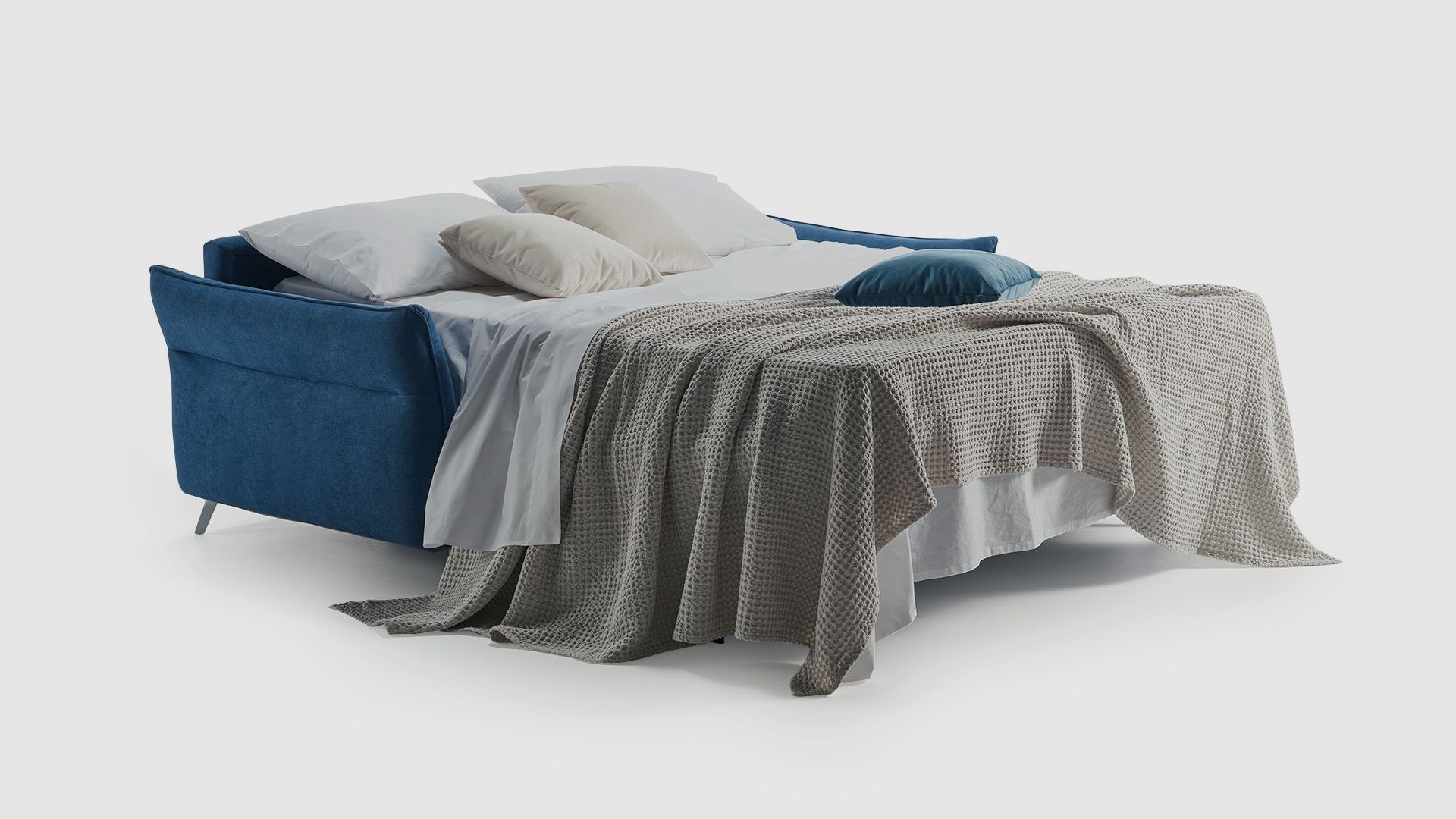 La praticità di un divano letto è data anche dalla facilità della sua apertura: i nostri modelli trasformabili sono dotati di un meccanismo che consente di ottenere velocemente un comodo letto con, al suo interno, un pratico contenitore per riporre i cuscini.