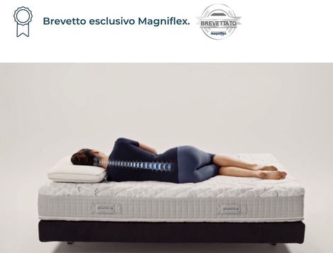 Innovativo brevetto Magniflex® che sfrutta la pressione che il corpo esercita sul materasso per attivare un sistema di movimentazione di lastre inclinate che a sua volta aziona una trazione sulla colonna vertebrale, in modo continuativo e naturale. Studi medici condotti hanno provato che: